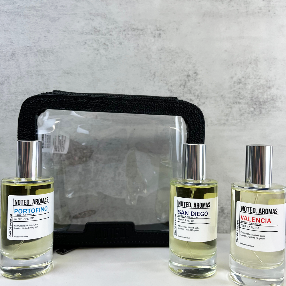 Build the ultimate Noted. Aromas bundle. Select your three favourite 50ml perfumes, these will be packed in our luxurious Clear cosmetic bag.