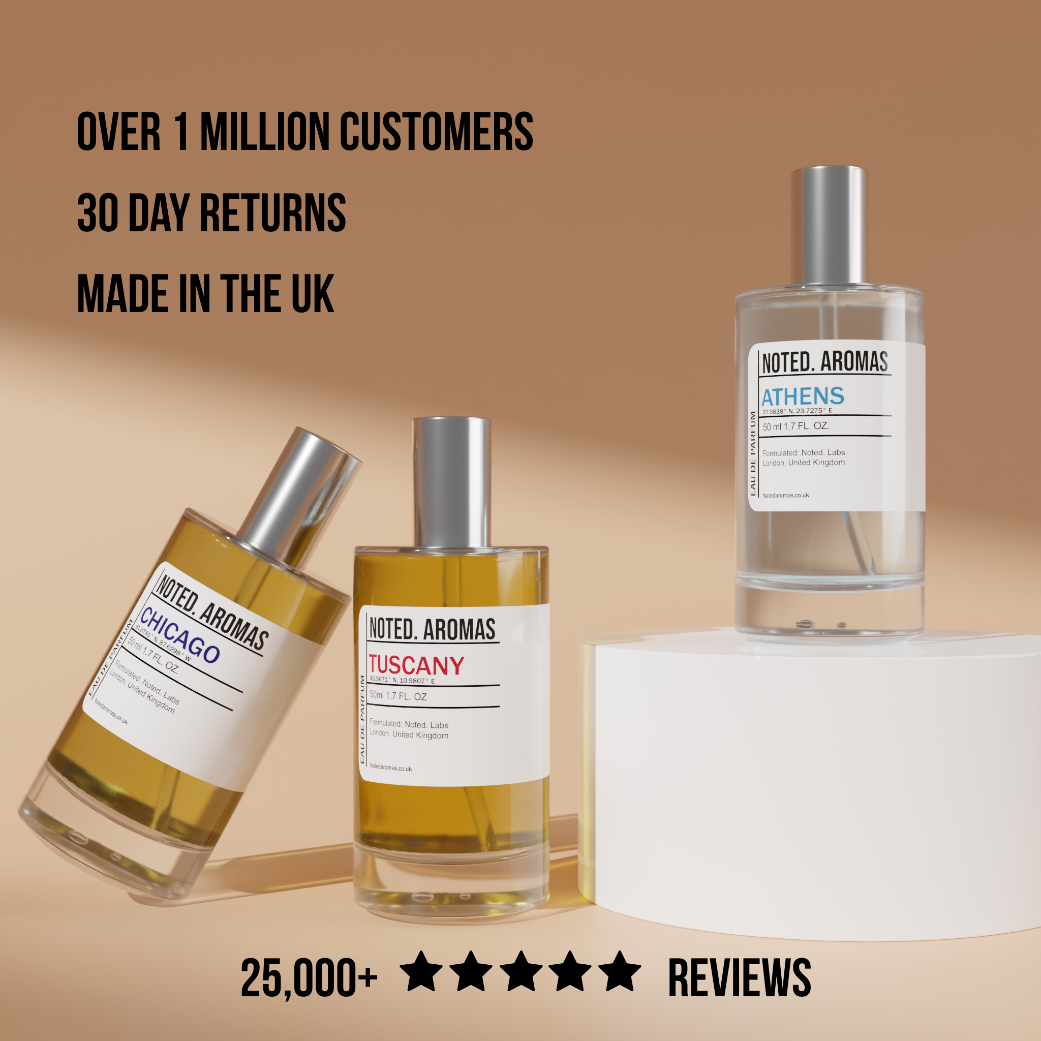 Please note that products mentioned throughout our site are a mere guide and in no circumstance should be mistaken for the actual high street, designer or niche brand. Names and copyrights, used or unused, are properties of their respective manufacturers and/or designers. Our fragrances are simply inspirations from, and are not ‘identical’ to any other fragrance or original. Our team has attempted to create near matches, to well known fragrances, but all scents are subjective. Noted Aromas are not to be confused with the original fragrances and we have no affiliation with the manufacturers of these unnamed designer brands.