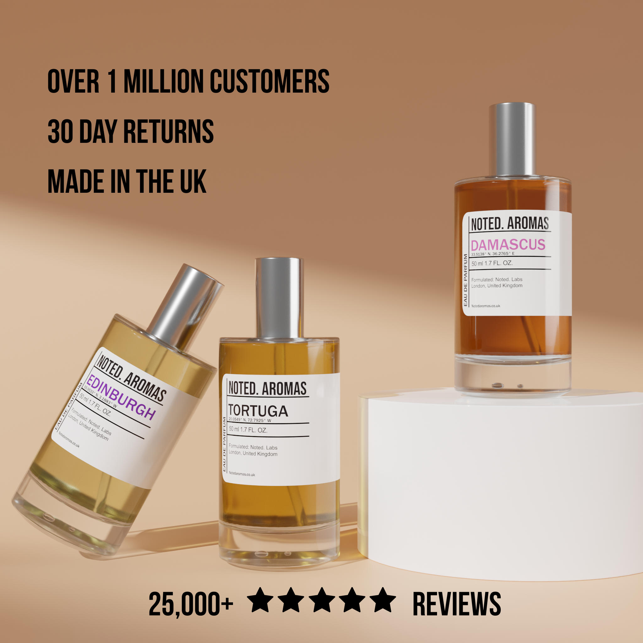 Please note that products mentioned throughout our site are a mere guide and in no circumstance should be mistaken for the actual high street, designer or niche brand. Names and copyrights, used or unused, are properties of their respective manufacturers and/or designers. Our fragrances are simply inspirations from, and are not ‘identical’ to any other fragrance or original. Our team has attempted to create near matches, to well known fragrances, but all scents are subjective. Noted Aromas are not to be confused with the original fragrances and we have no affiliation with the manufacturers of these unnamed designer brands.