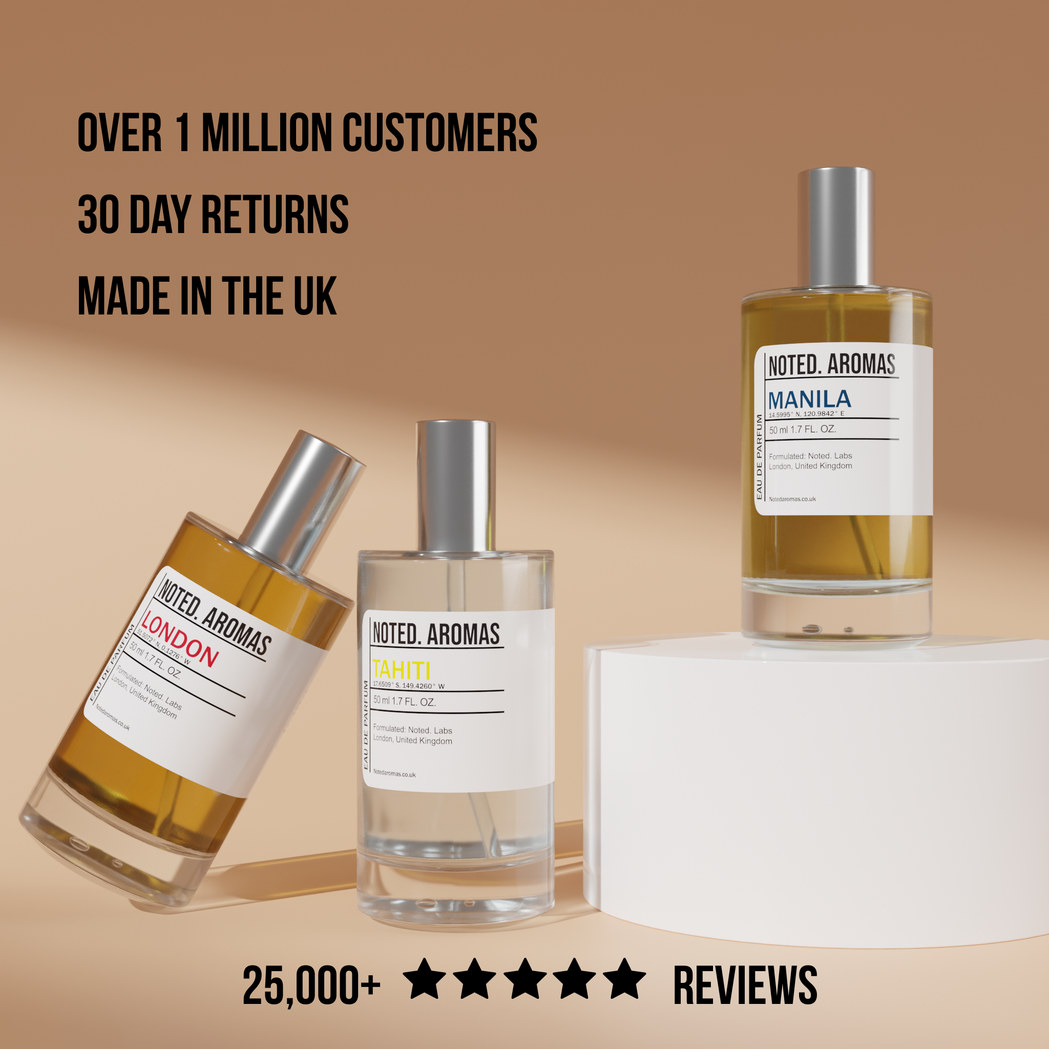 Please note that products mentioned throughout our site are a mere guide and in no circumstance should be mistaken for the actual high street, designer or niche brand. Names and copyrights, used or unused, are properties of their respective manufacturers and/or designers. Our fragrances are simply inspirations from, and are not ‘identical’ to any other fragrance or original. Our team has attempted to create near matches, to well known fragrances, but all scents are subjective. Noted Aromas are not to be confused with the original fragrances and we have no affiliation with the manufacturers of these unnamed designer brands.